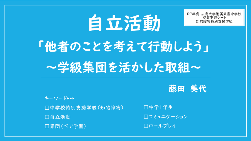 令和7年度 広島大学附属東雲中学校 授業実践シート 特別支援教育