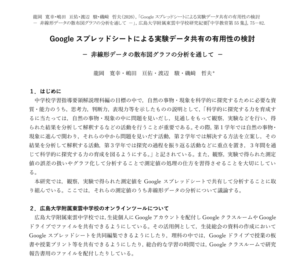 Googleスプレッドシートによる実験データ共有の有用性の検討ー非線形データの散布図グラフの分析を通してー
