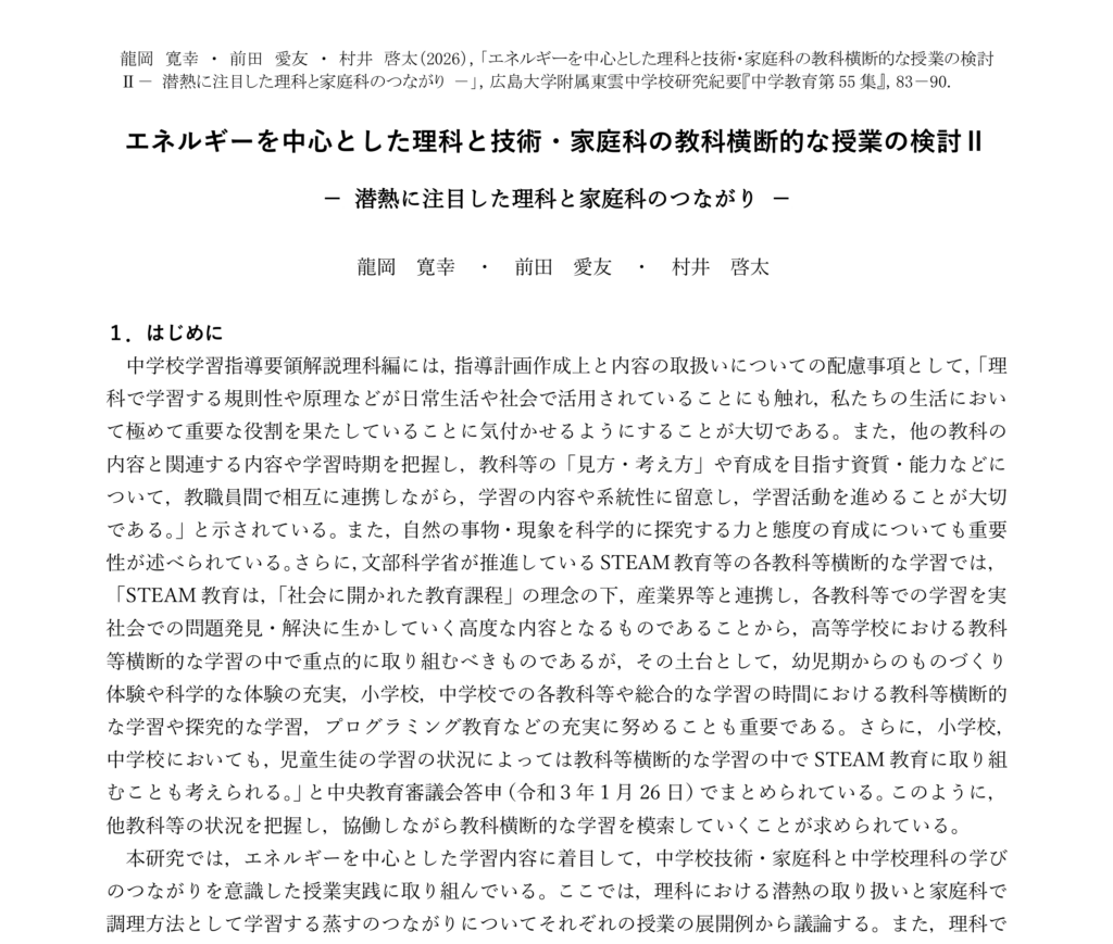 エネルギーを中心とした理科と技術・家庭科の教科等横断的な授業の検討Ⅱ-潜熱に注目した理科と家庭科のつながり-