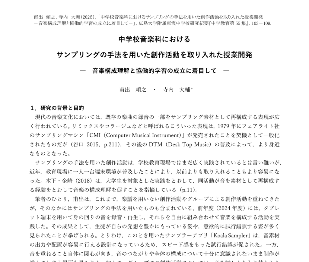 中学校音楽科におけるサンプリングの手法を用いた創作活動を取り入れた授業開発ー音楽構成理解と協働的学習の成立に着目してー