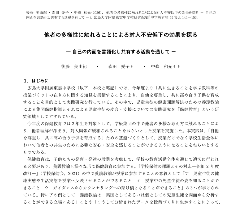 他者の多様性に触れることによる退陣不安定化の効果を探るー自己の内面を言語化し共有する活動を通してー