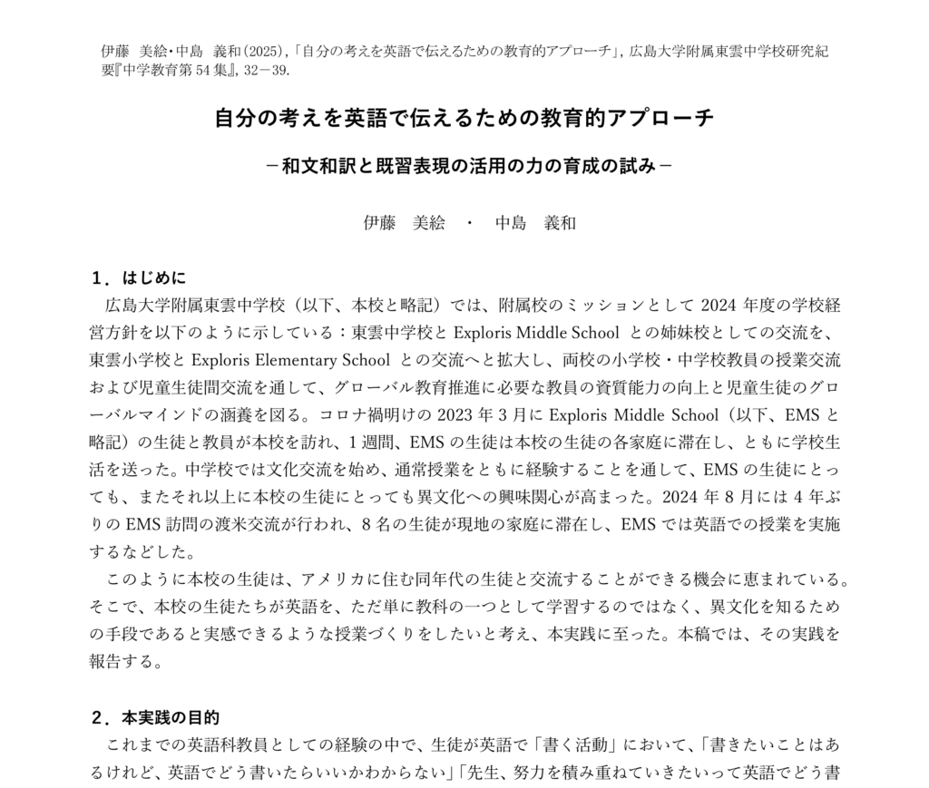 自分の考えを英語で伝えるための教育的アプローチ : 和文和訳と既習表現の活用の力の育成の試み