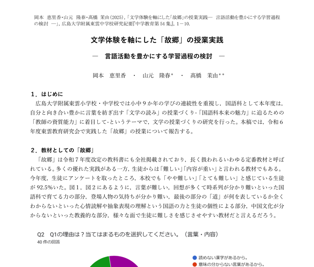 文学体験を軸にした「故郷」の授業実践 ー言語活動を豊かにする学習過程の検討ー